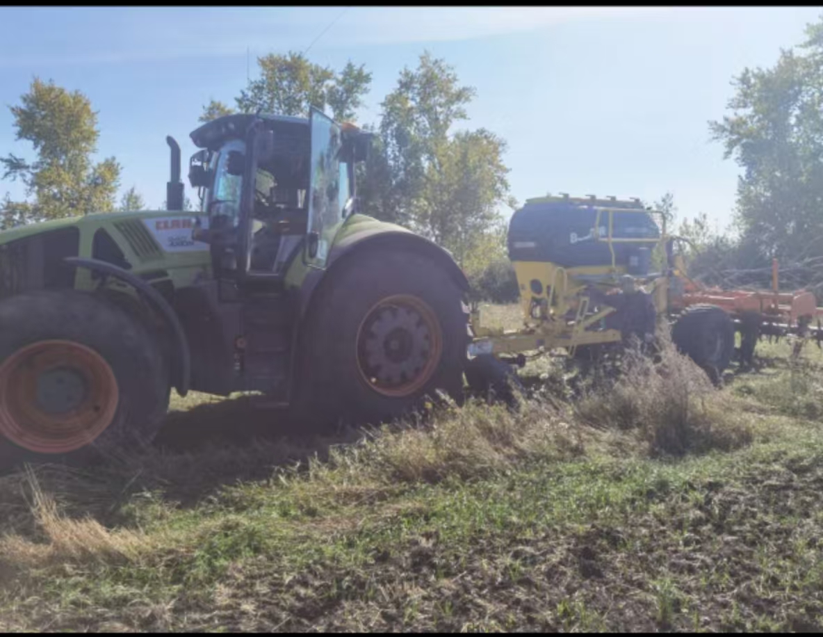 - Зміст роботи: Тягова робота з важною бороною шириною 6 метрів, 34 лапами та двома групами катків для обробітку ґрунту після оранки.